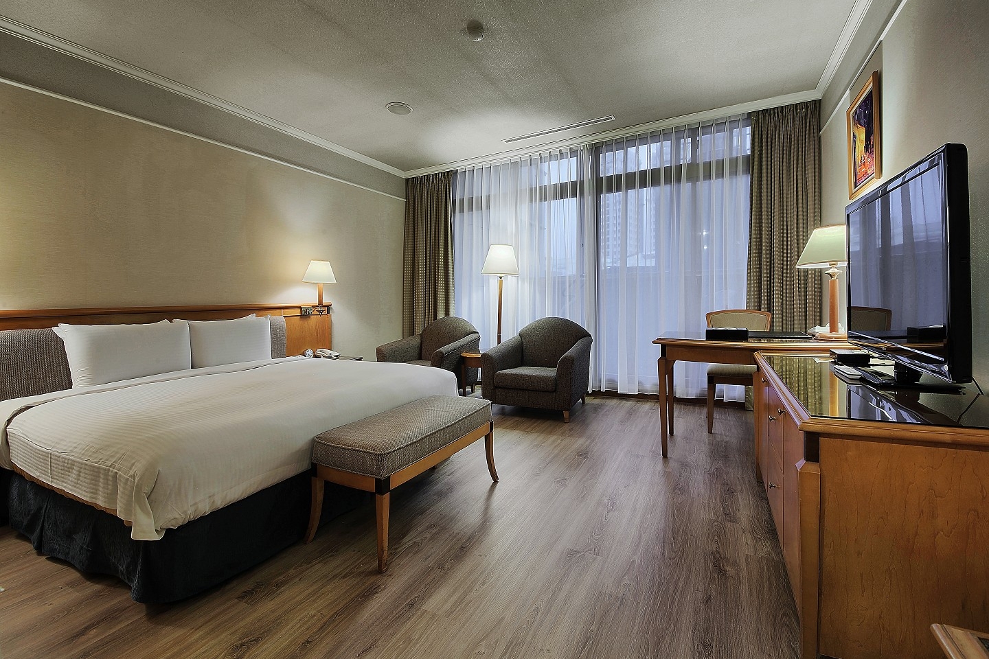 バルコニー付きの客室で、キングサイズベッド(180×200cm)、液晶テレビ、バスタブとシャワーブースが独立したバスルーム、温水洗... +